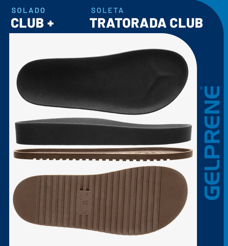 Solado Club +/ Tratorada Club para sandálias modelo Birken, grade feminina e masculina.